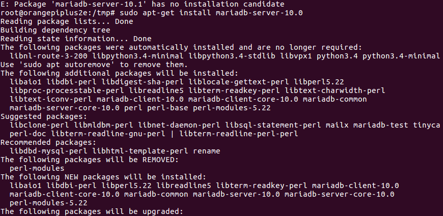 Para ello utilizariamos el siguiente comando para finalizar la instalación de MariaDB, y tocará instalar la versión 10.0: