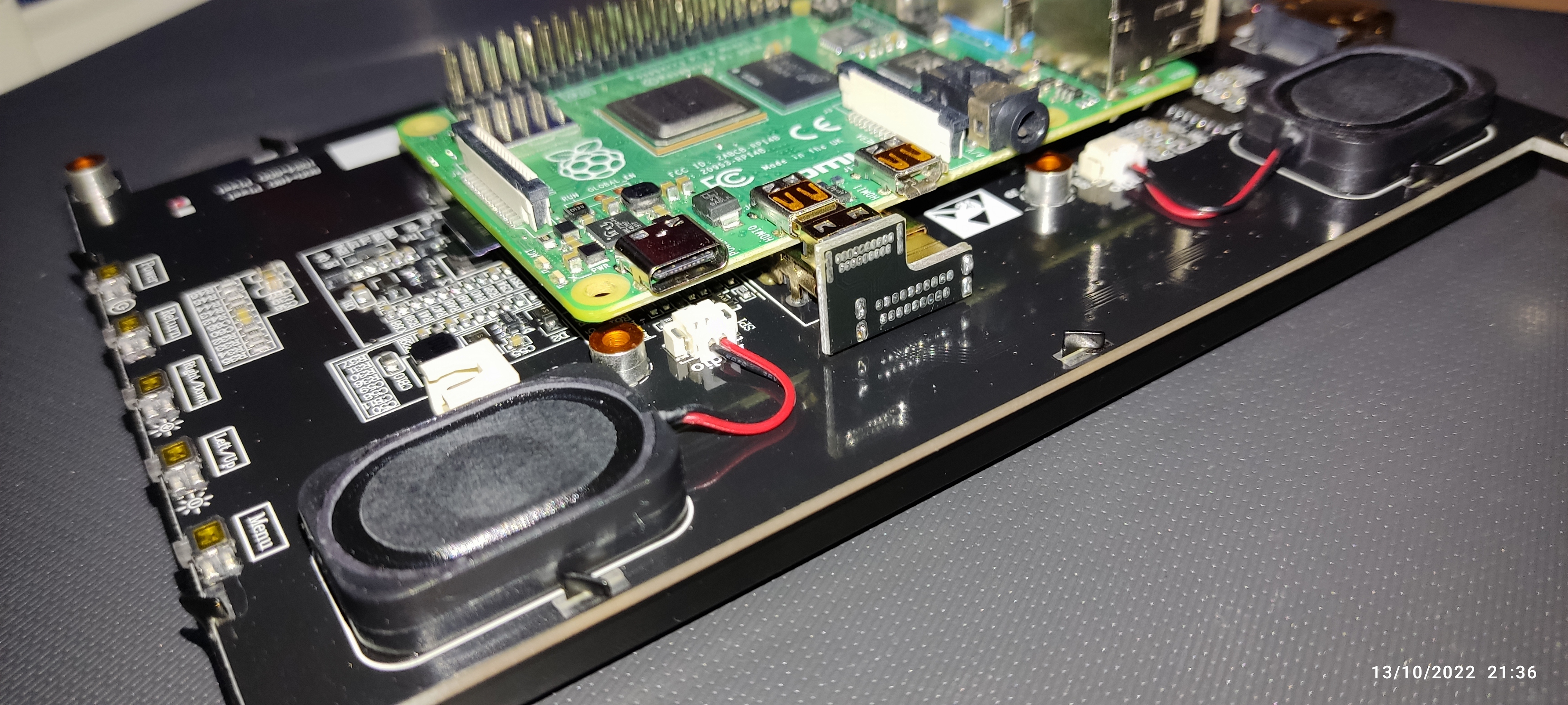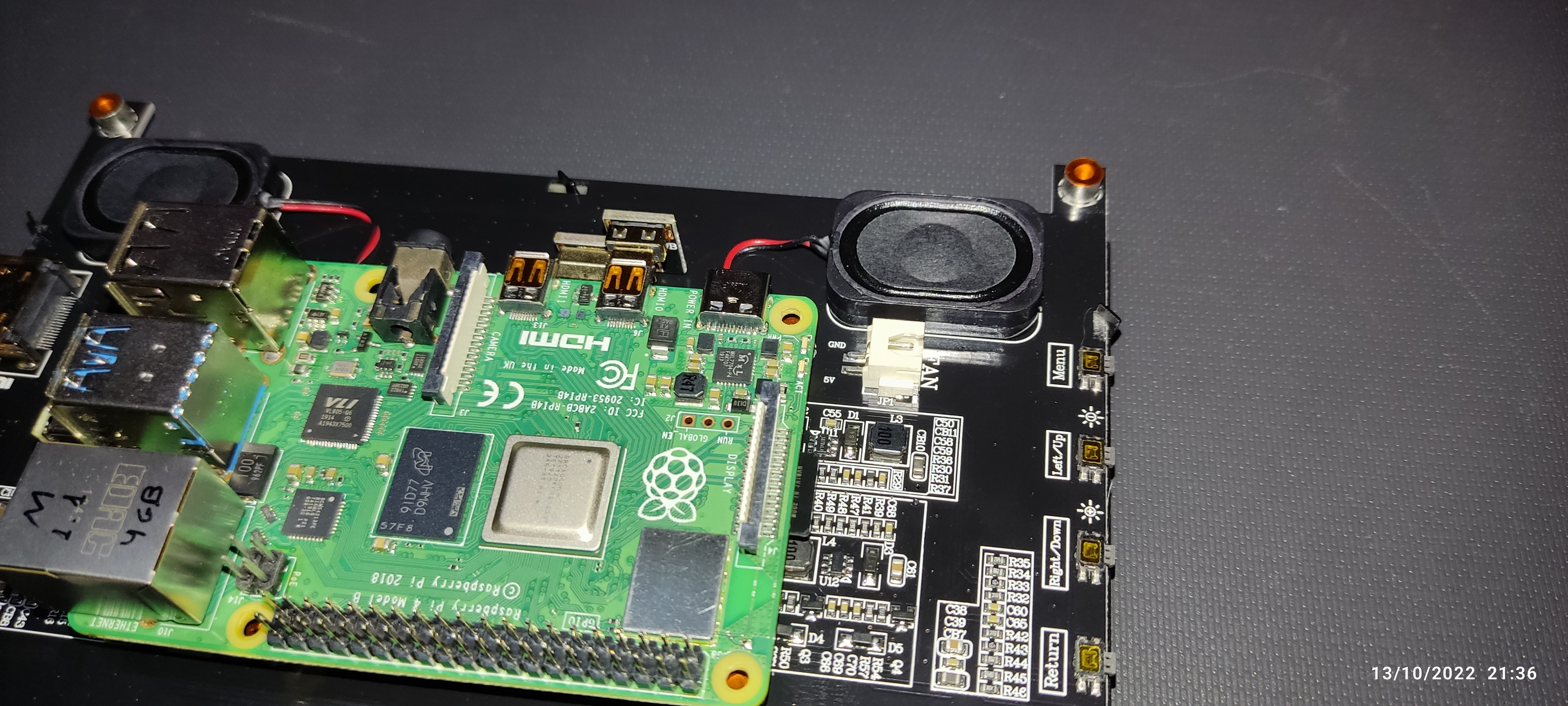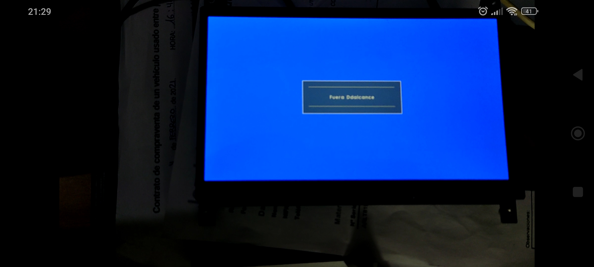 Os pongo fotos de cómo se queda la pantalla colgada y la Raspberry conectada a la pantalla.