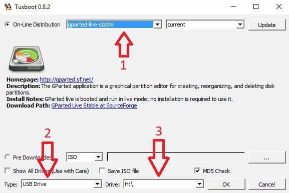 1.- Seleccionen la distubicion : Gparted-live-stable ( Se descargara de forma automática ).