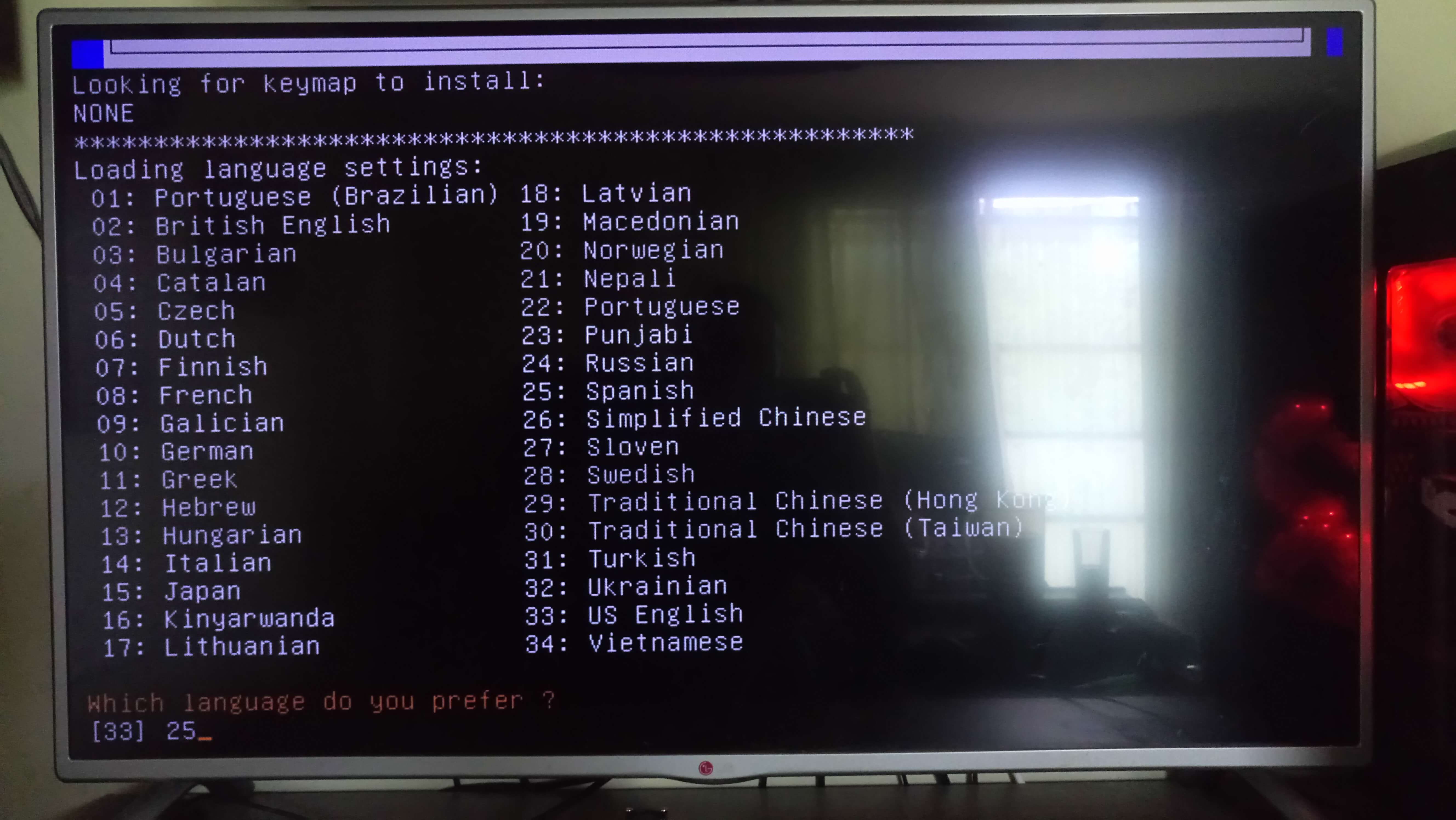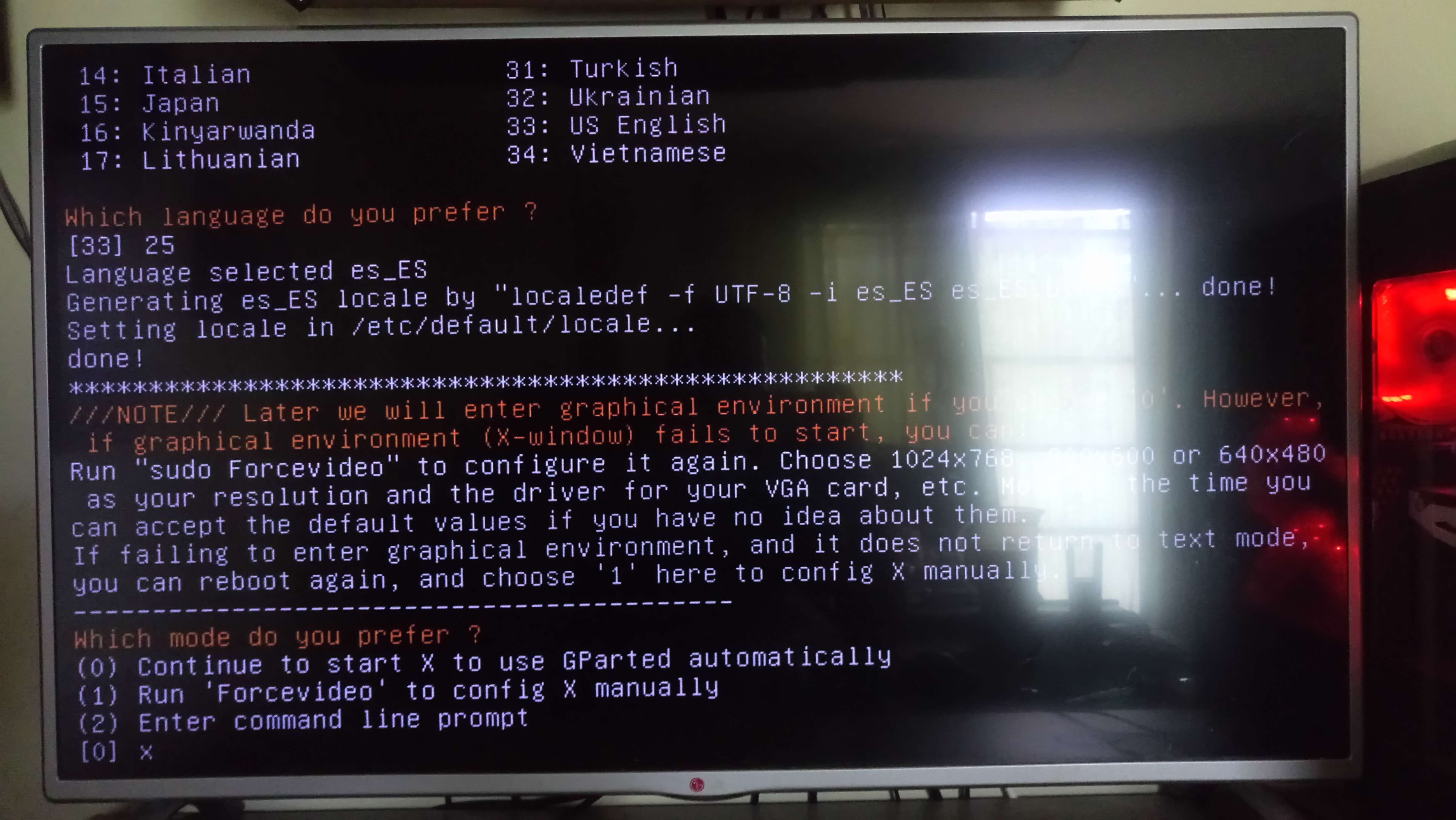 Aqui es para cambiar el idioma, escriban el numero 25 y luego ENTER