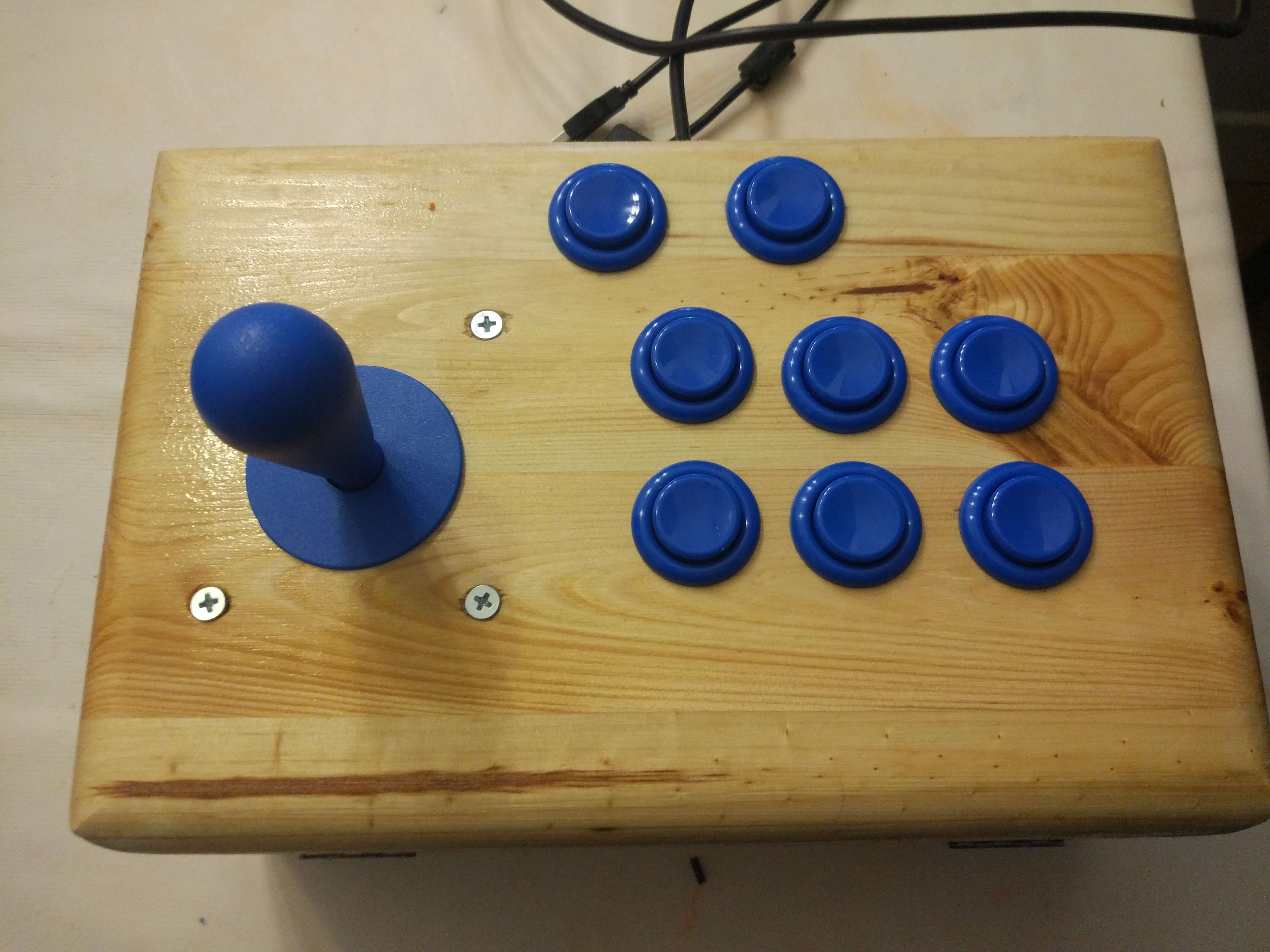 La caja es la de Leroy que han usado unos cuantos en este hilo, la placa es de un arcade stick mayflash que previamente me había cargado intentando modificarlo y el mando y botnes son de Industrias Lorenzo.