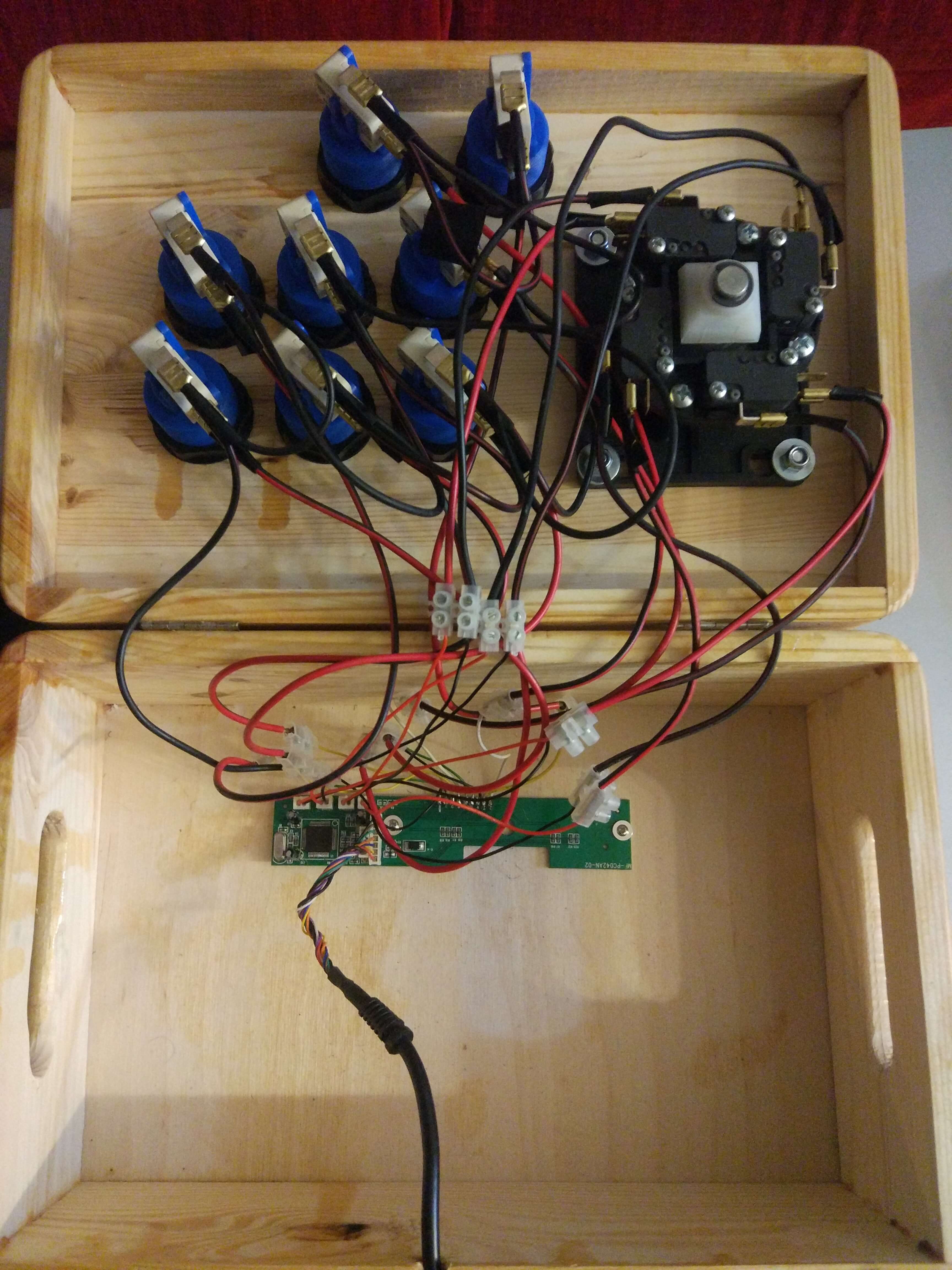 Os dejo un par de fotillos de un arcade que me he construido partiendo de la idea de @txankete pero con un acabado mucho más amateur, para animar a aquellos no iniciados en el bricolaje que como yo, cuando ve lo que la gente hace por ahí piensa que ni en un millón de años podría hacer algo así.