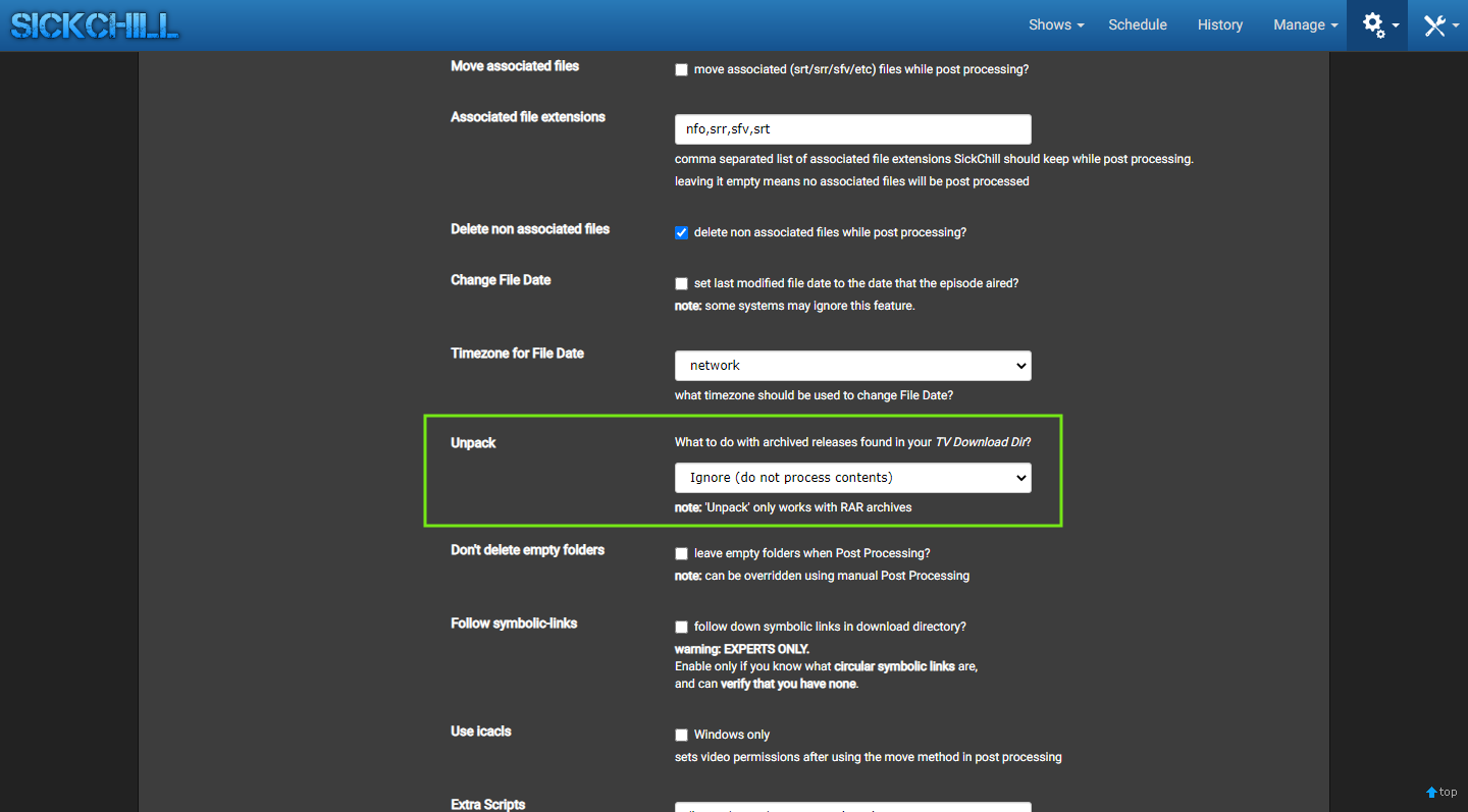 También tienes opción desde dentro de SickChill, creo recordar: Por otra parte para el postprocesado tras