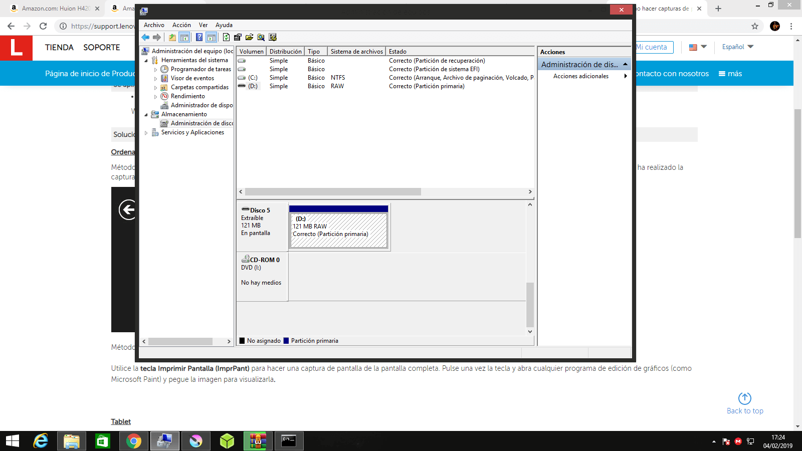 Hola soy nuevo en el foro y quiero que me ayuden con este problema.Instale retropie en mi memoria sd con win 32 disk imager y ahora no aparece en el explorador de windows. También cuando abro el administrador de discos me sale como partición primaria con 121 mb y en formato raw el cual no me deja formatear y al querer abrir el contenido de la usb me dice formatee el disco para poder usarlo y no encuentro solucion