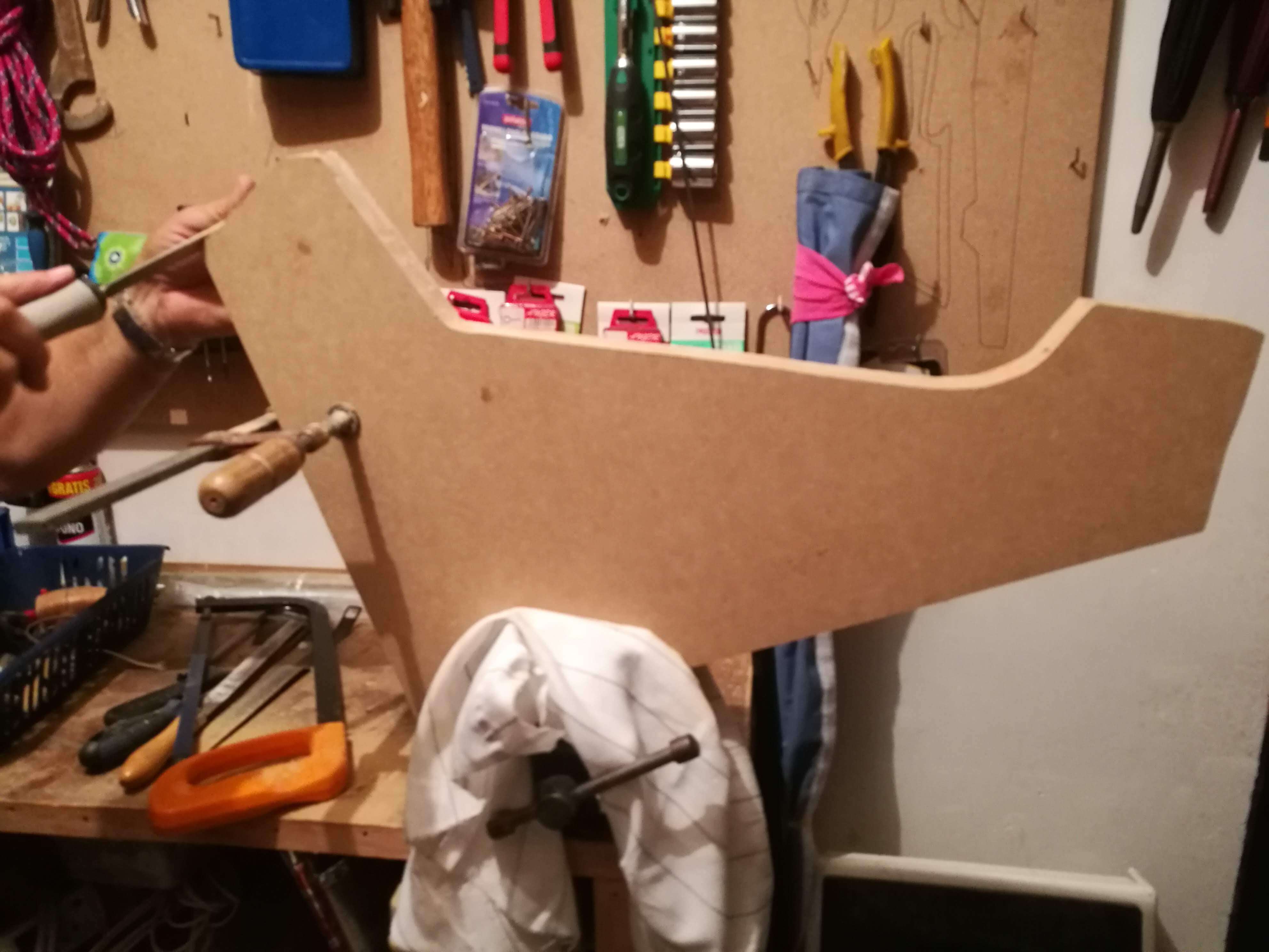 Hola Pakuni, hace 50cm de anchura Los laterales los dibujé directamente sobre la madera y el resto de cortes son todos rectos (ya los mediré y lo apunto por aquí).