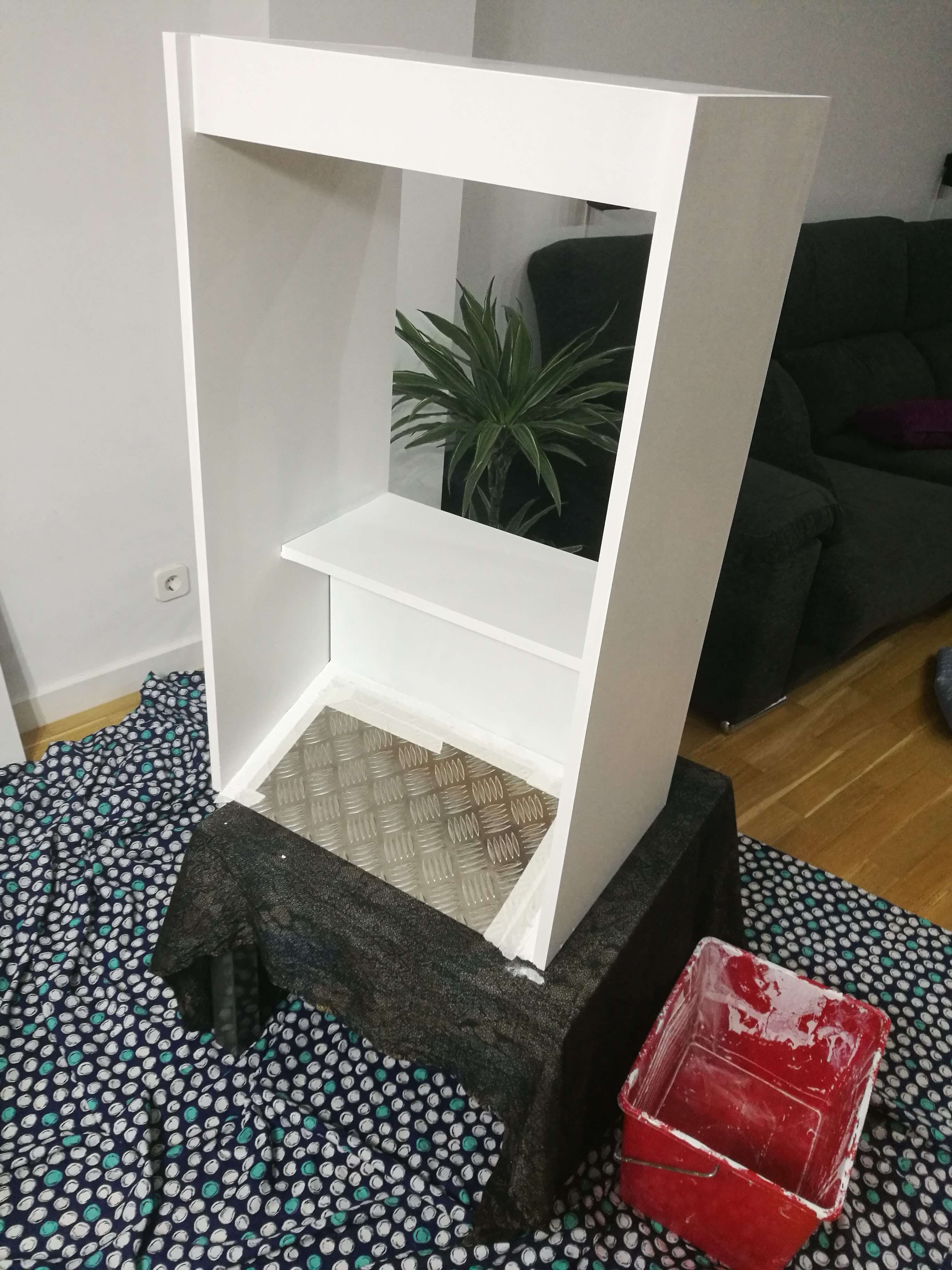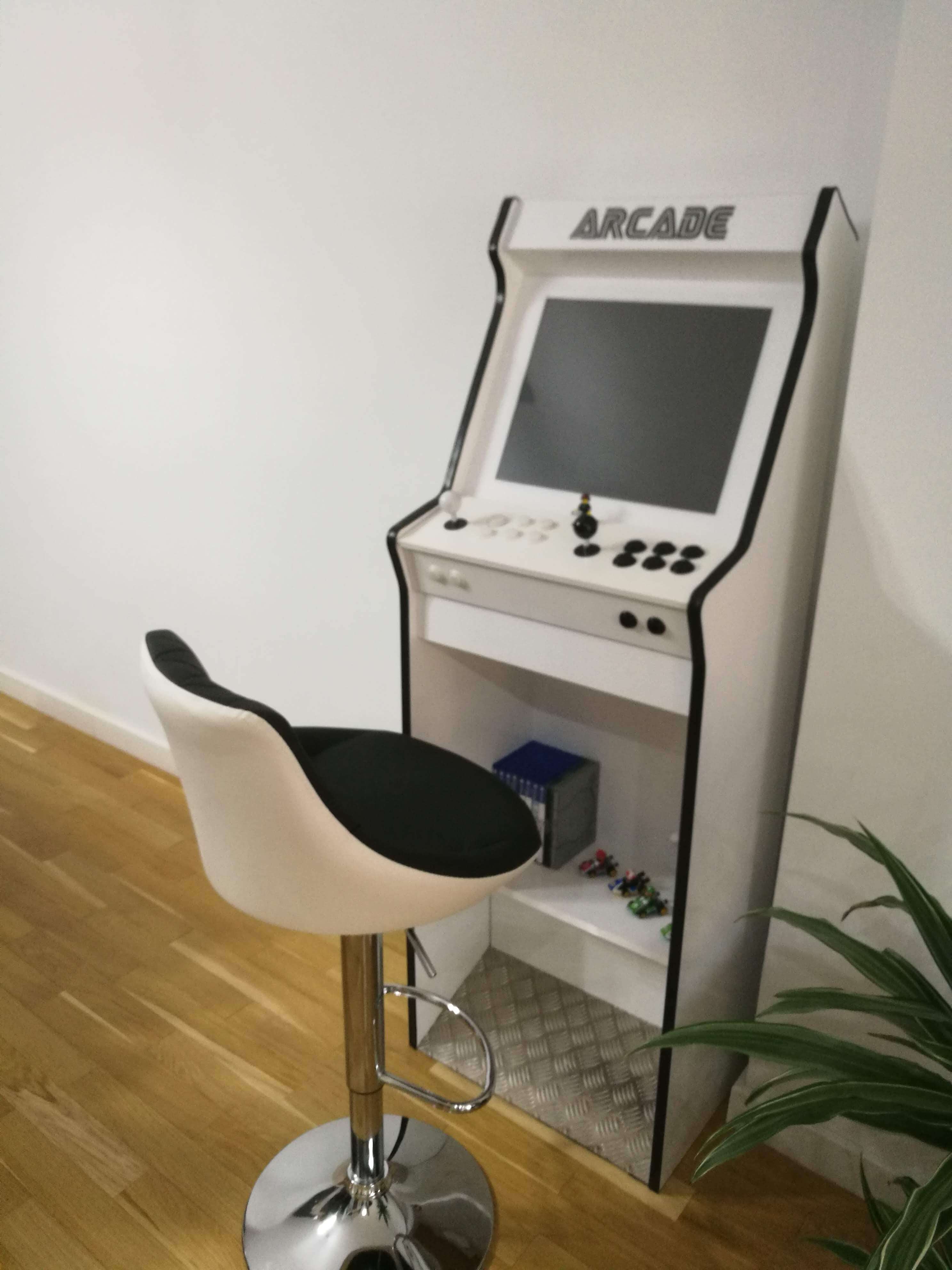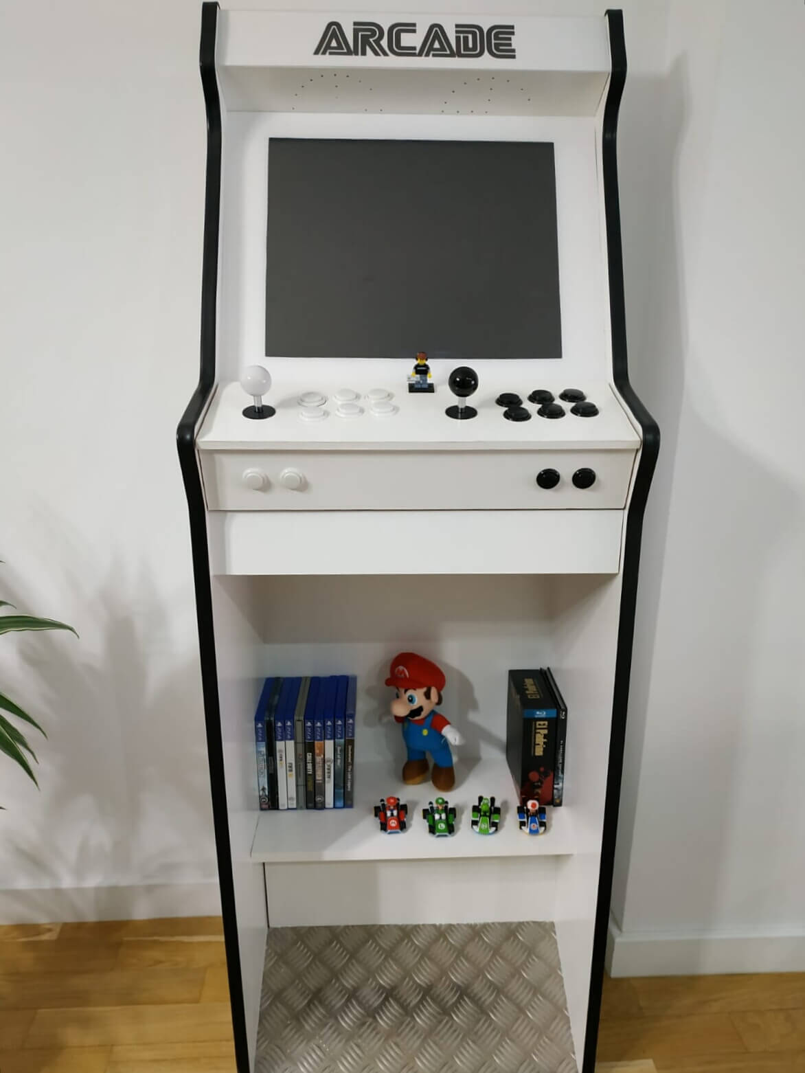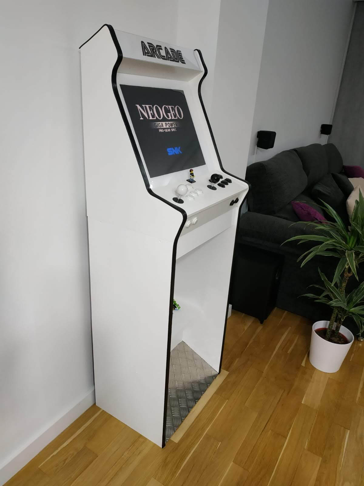 Hola, por aquí os dejo unas imagenes del proceso de construcción de mi bartop casera. Hecha con poco presupuesto, monitor de 19 reutilizado, raspberry pi 3b+, tablas dm de 16mm y 10mm y pintada de blanco brillo.