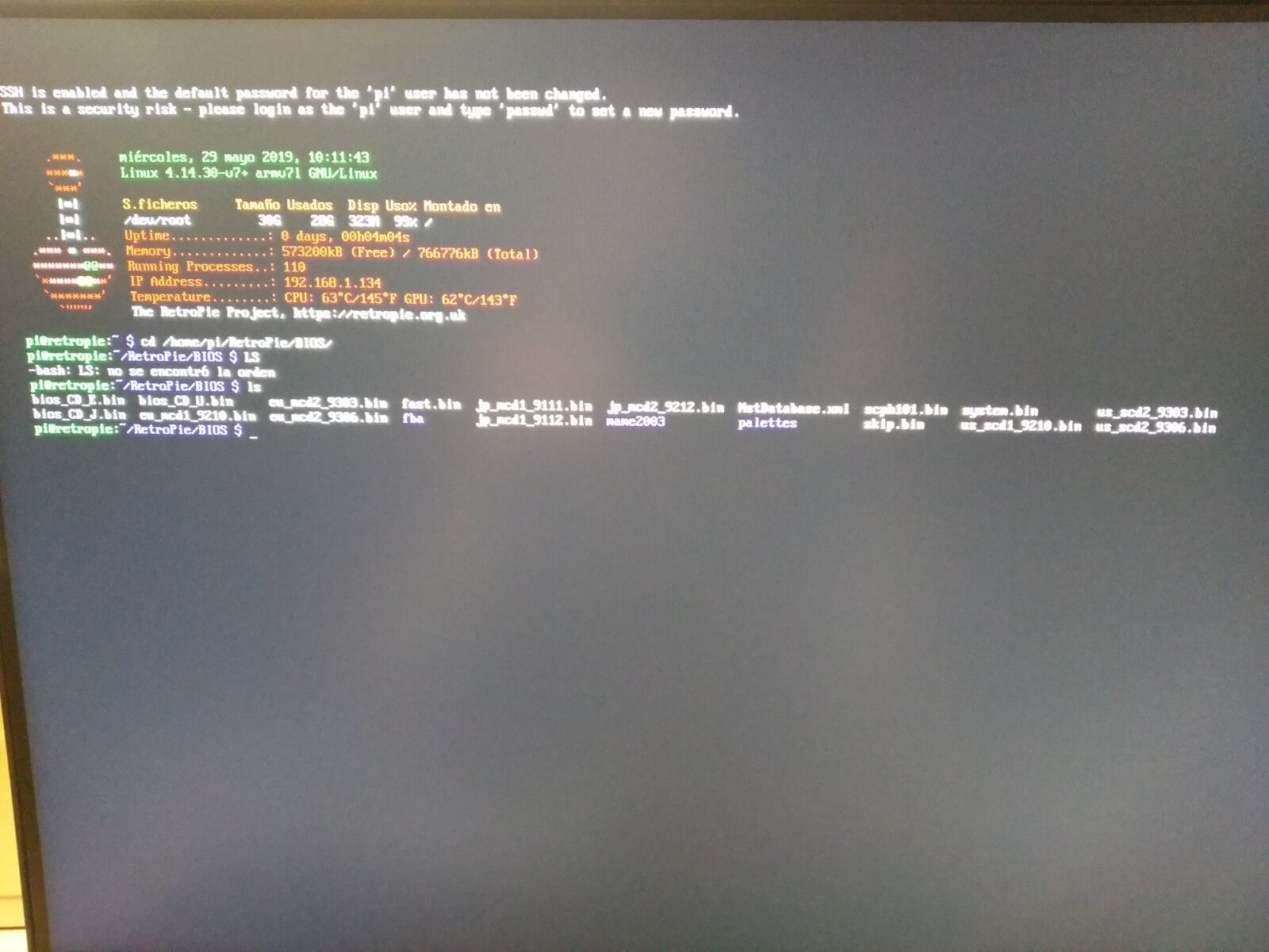 recientemente he adquirido una rasperry pi 3 b+ para convertirla en una maquina arcade, he instalado la distribucion pero no consigo que me funcione elemulador 1r-pcsx-rearmed ya que me aparece una ventana igual a la que os adjunto y cuando pasan unos segundos se quita dicha pantalla y vuelvo al inicio.