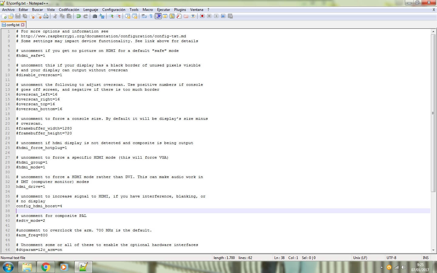 He estado leyendo por foros y tal de la configuración del monitor en el archivo Config.txt que hay en la micro sd y he estado toqueteandole, pero me a dado igual, sigue igual.