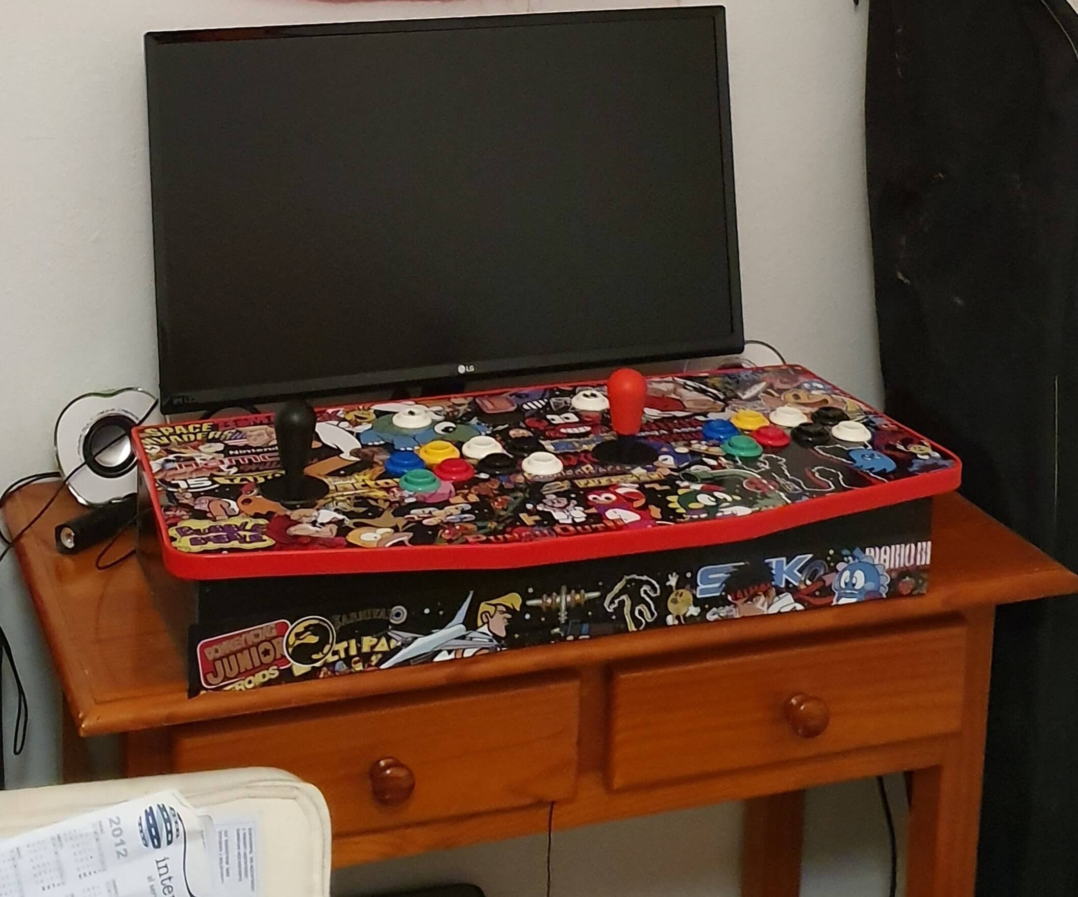 Ahora ya sin prisas quiero acoplarle los altavoces al cajón y terminar de decorar algo los laterales y frontal y alguna cosilla más como que al botón de créditos le puse luz pero después de hacer esta foto, pero básicamente este es el resultado, espero que os guste.