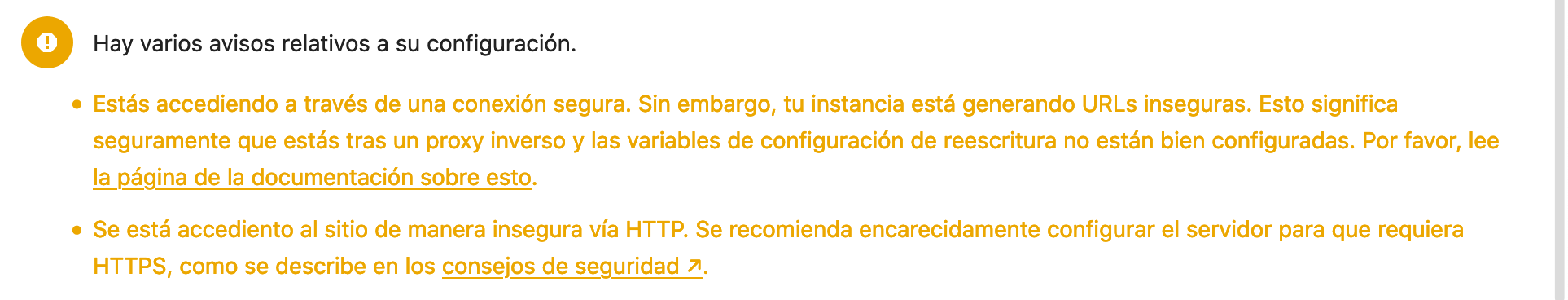 Como hemos autofirmado los certificados nos dará un error el siguiente error: