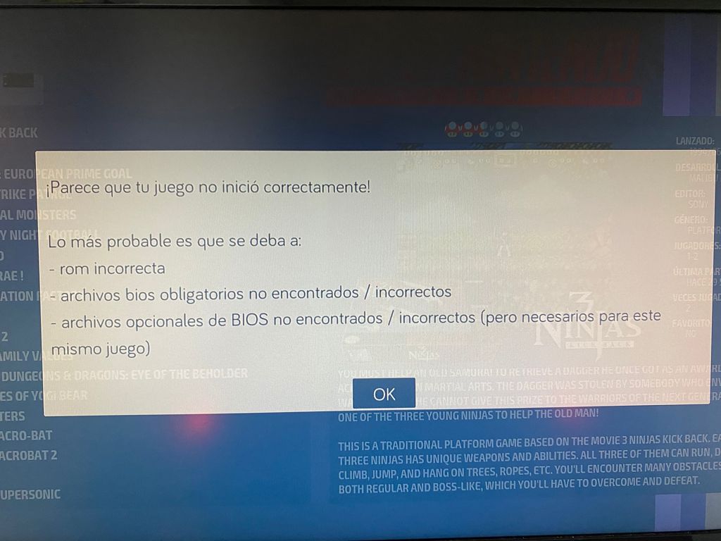 Buenos días, despues de tener todo configurado en la raspberry le he dado a algun boton y me sale este anuncio que me bloquea los juegos. Gracias.