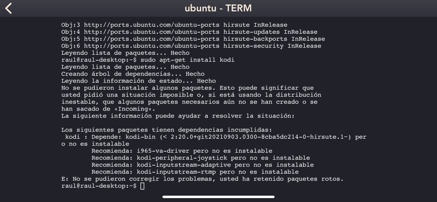Imposible kodi en ubuntu 20.4