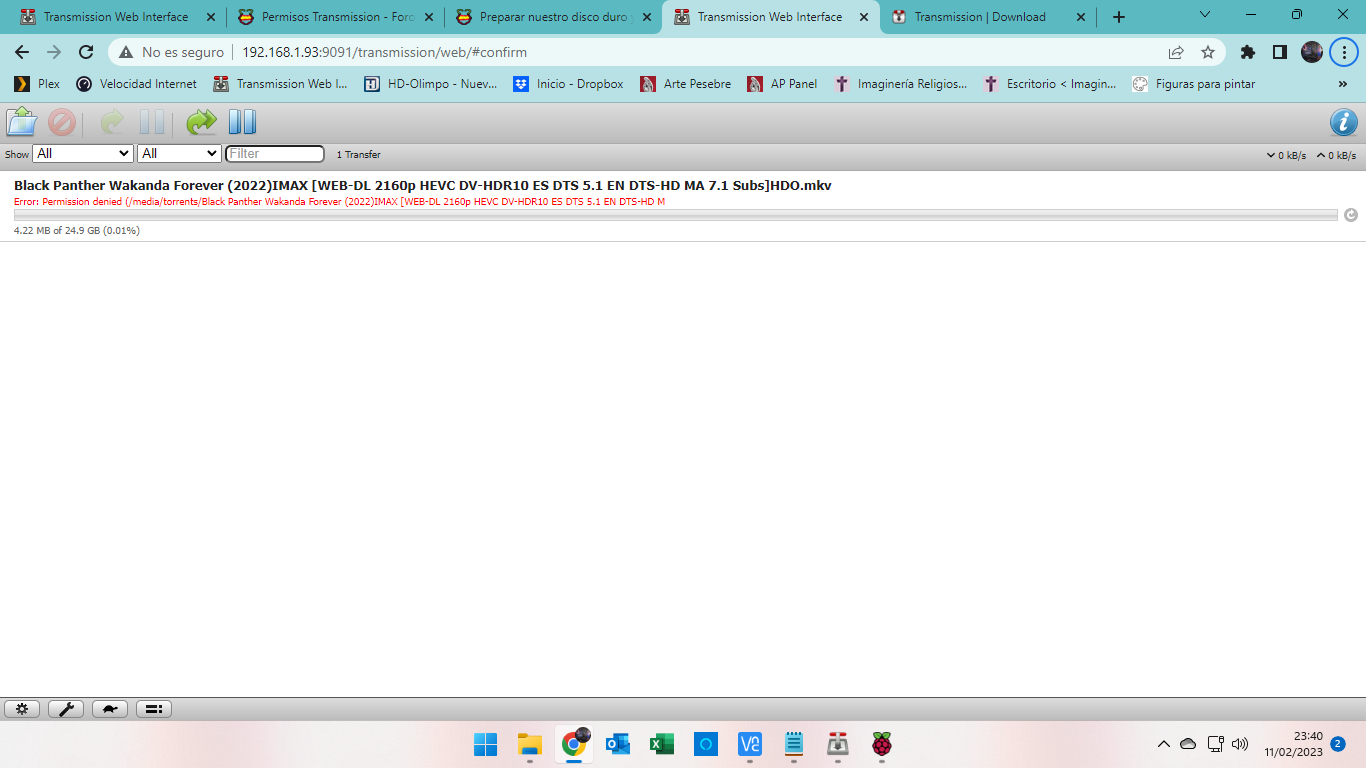 Agradecería ayuda de algún experto, el objetivo es poder instalar transmission para descargar y Plex para compartir, pero no paso del Transmission.