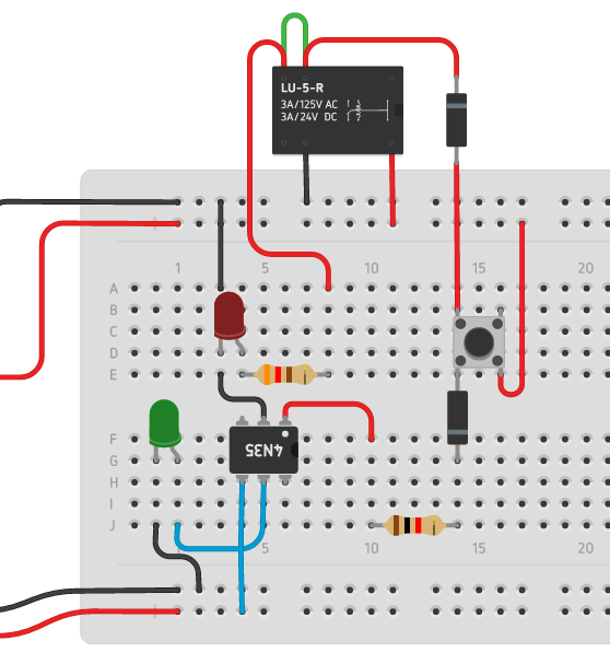 La primera fuente de alimentación, la de 5v, es la fuente de alimentación original de la raspberry. El led rojo simula ser la raspberry. El led verde simula ser el puerto GPIO que gestiona el apagado/reset. Si entras en la simulación verás que al encender la fuente de alimentación la raspberry permenece apagada (led rojo apagado). Si damos un toque al pulsador, se enciende la raspberry (led rojo encendido). Ahora que tenemos la raspberry encendida, si volvemos a pulsar el botón, se encenderá durante la pulsación el led verde (sginifica que estamos pasando la señal de apagado al GPIO) y la raspberry se apagará. Puedes ver que el led rojo sigue encendido, y es porque en ningún momento le corto la corriente a la raspberry, porque el apagado será por soft, no físico.