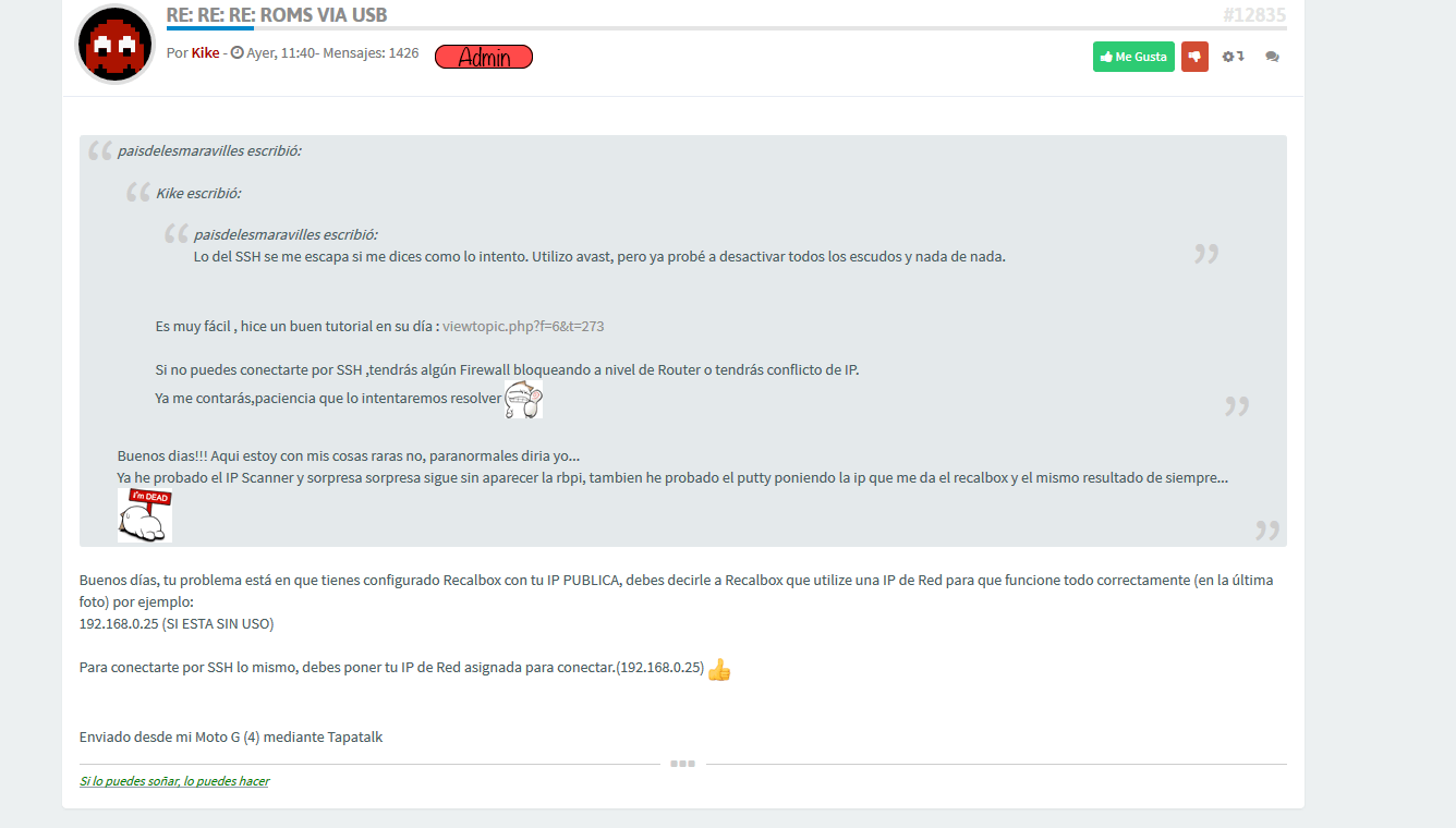 Gracias voy a probar, pero creo que es como me dijo Kike un problema de que mi Recalbox se conecta a internet atraves de una IP publica en lugar de a mi LAN