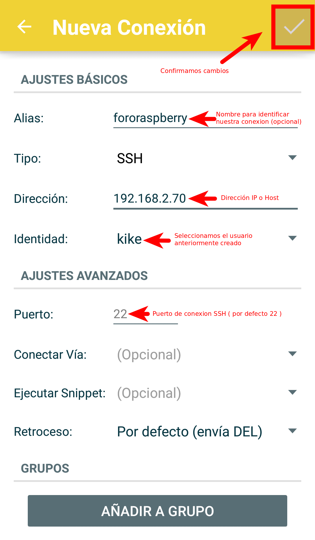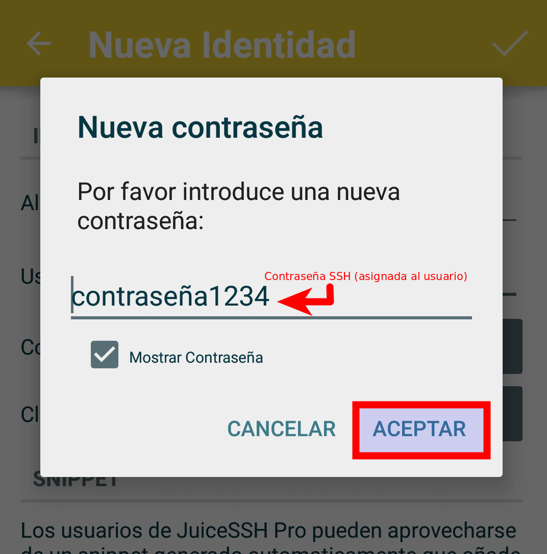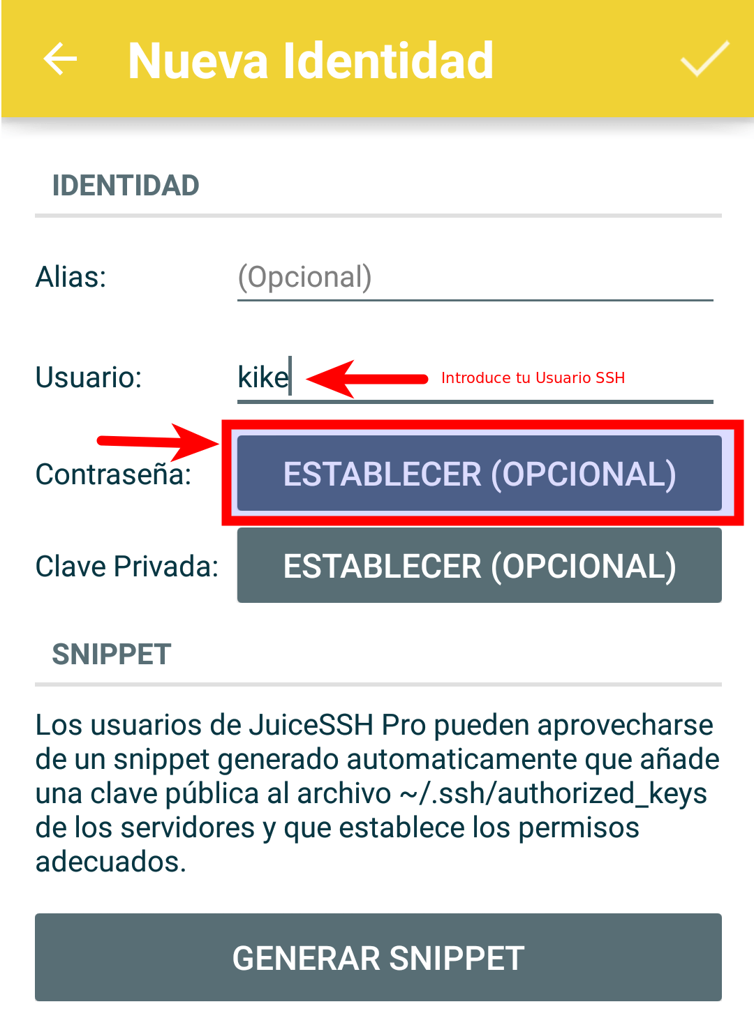 Damos a Conexiones Creamos primero un nuevo usuario en Identidad - Nuevo Agregamos el usuario SSH y establecemos la contraseña Ahora introducimos todos los datos correspondientes indicados en la imágen Y para conectar, pulsamos en el Host Creado!