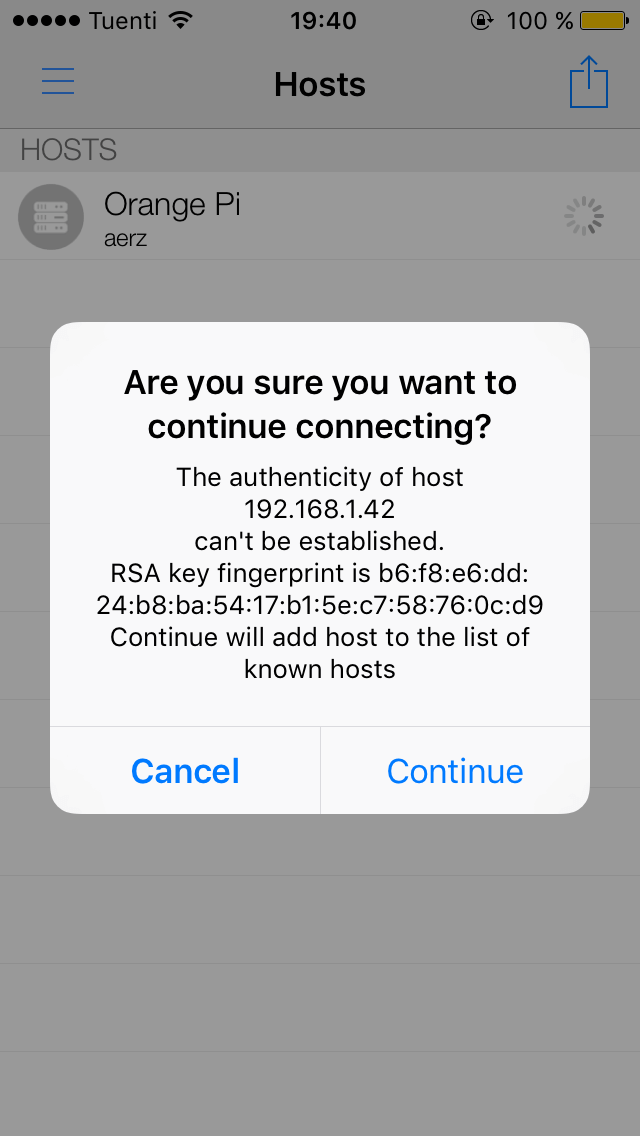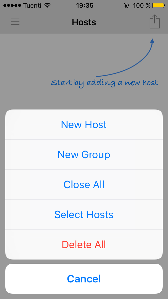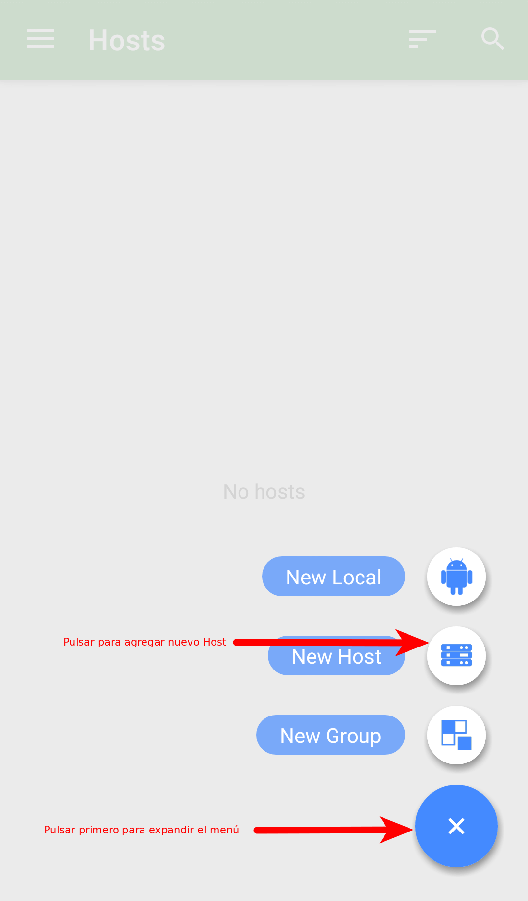 Abrimos la app y una vez hemos averiguado la IP asignada a nuestro SBC, pulsamos en el botón de "Share" de arriba a la derecha y después en New Host: