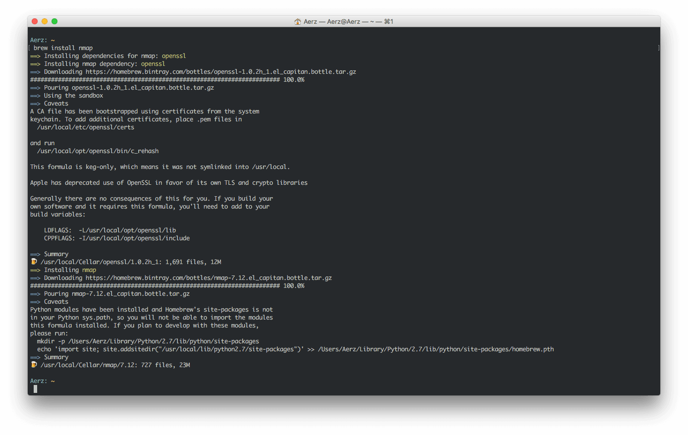 El procedimiento para encontrar la IP asignada es practicamente igual que en Linux. Empezaremos instalando nmap mediante el gestor de paquetes Homebrew para que así tengamos acceso a actualizaciones automáticas y esté todo más ordenado. Abrimos consola e instalamos Homebrew: