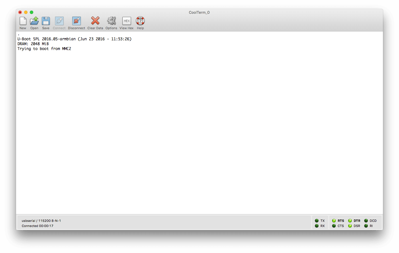 Por último pinchamos en Connect y empezará a capturar toda la información del USB. Enchufamos a la corriente nuestra Orange Pi y ya tendremos en Coolterm la consola Serial desde la que podremos ver todo lo que está pasando y usar desde aquí la Orange Pi