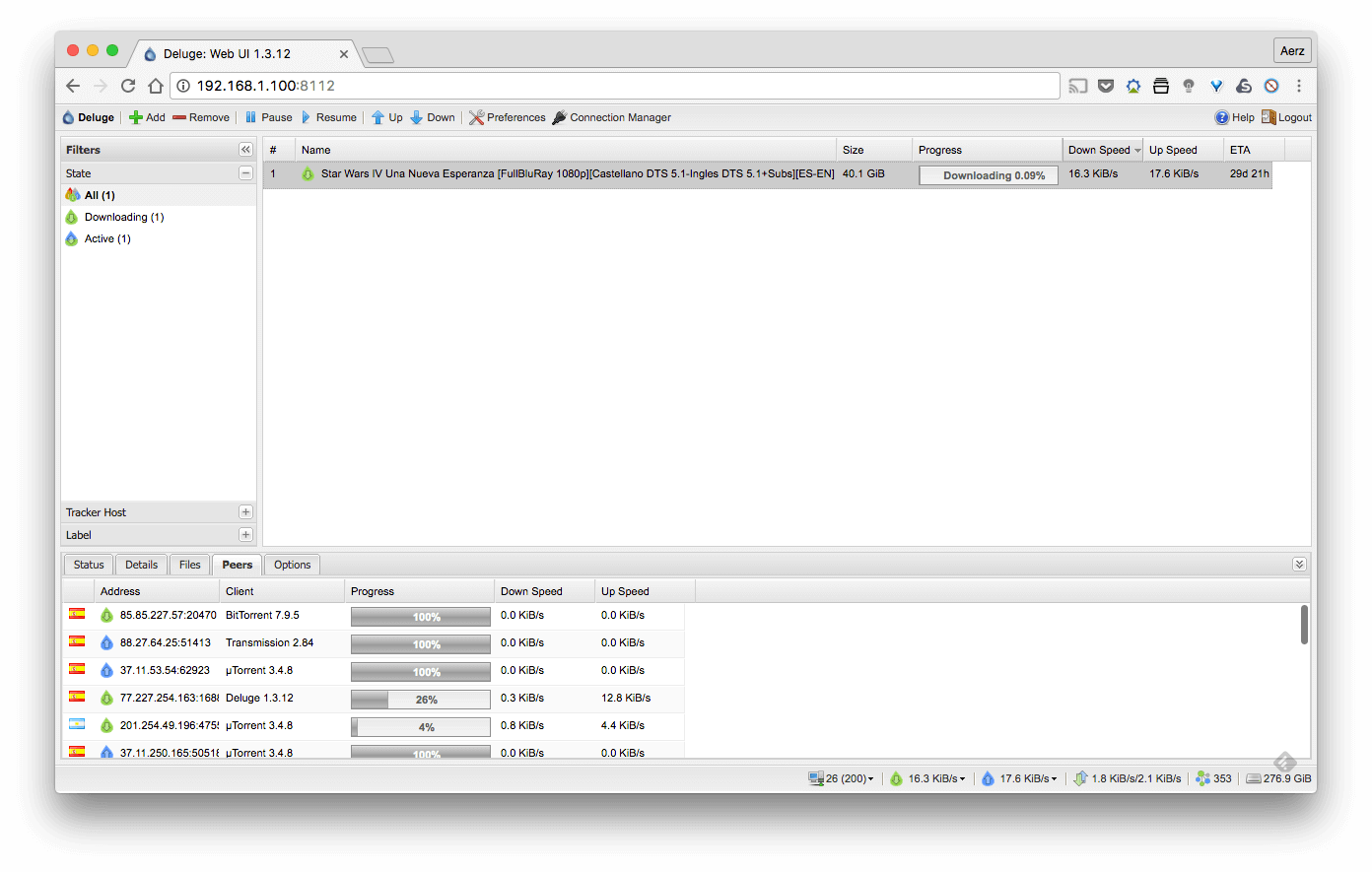 Aunque ya existe una guía sobre cómo instalar Transmission (interfaz web), Deluge es una alternativa tal vez un poco más completa por sus plugins o al menos, otro cliente que probar. En este mini tutorial, voy a explicar como instalarlo y ponerlo a funcionar rápidamente.