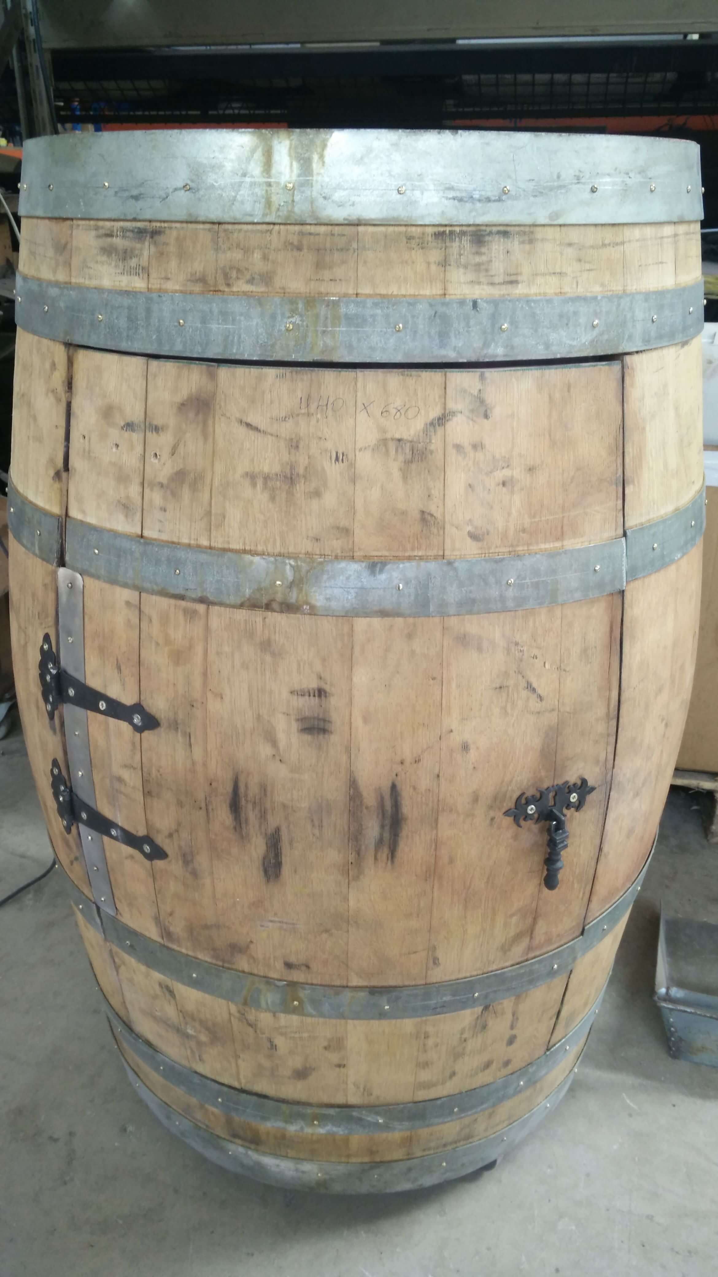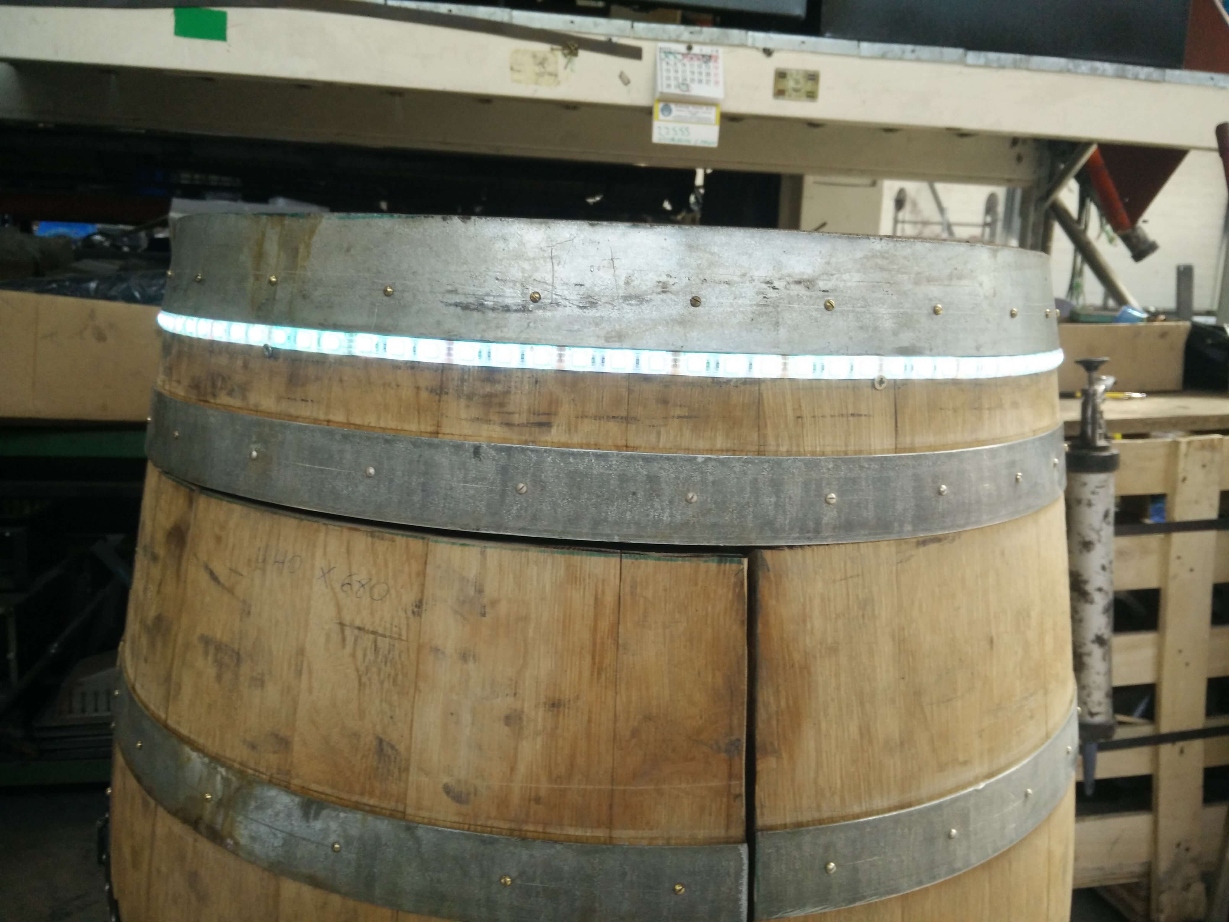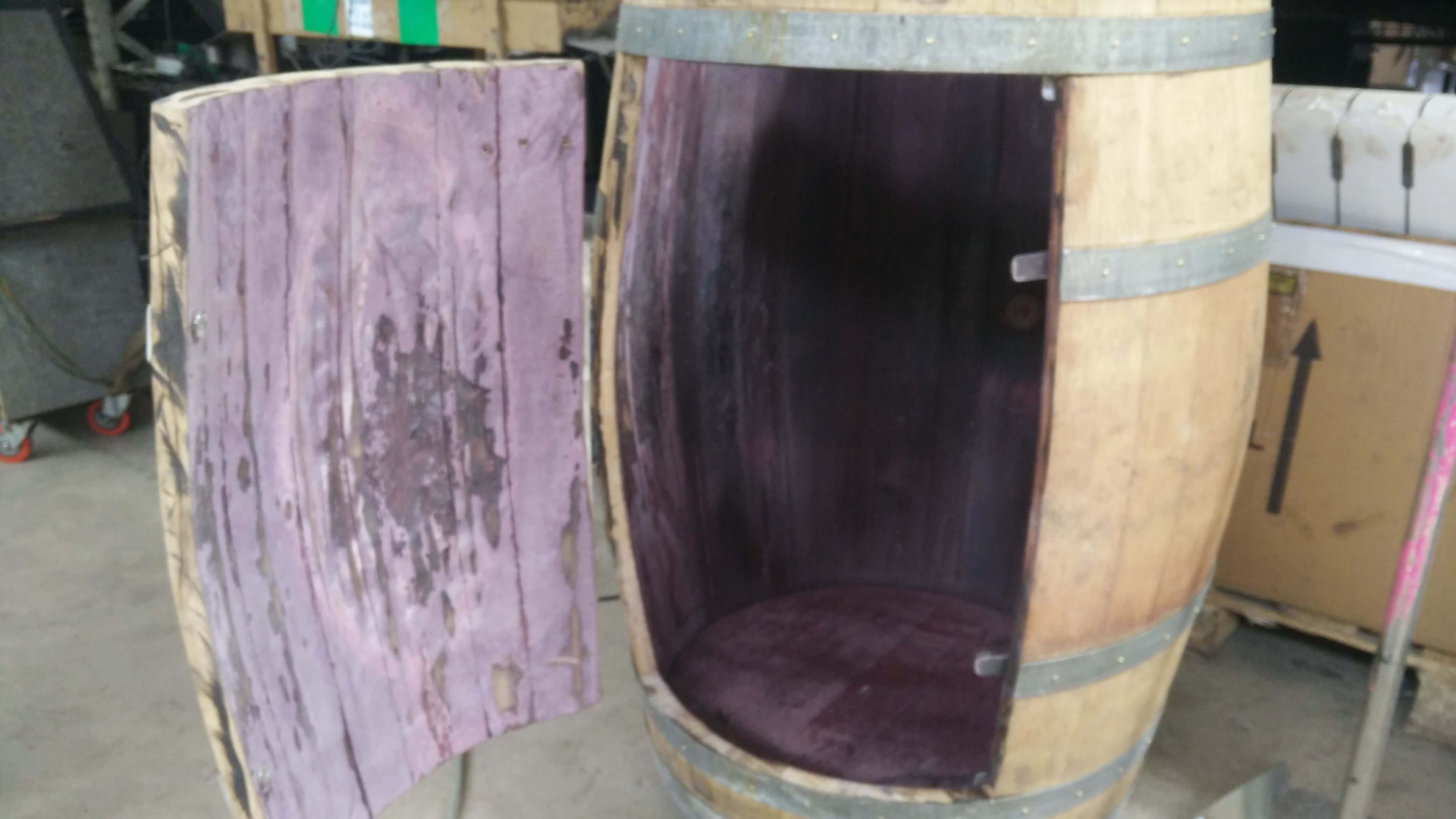 Un barril transformado en mesa y maquina retro con una raspberry pi mas botellero para echarte uno vinillos entre partida y partida