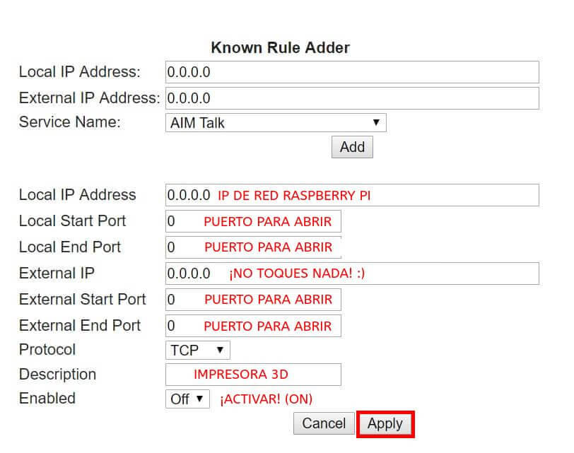 He conseguido instalar octoprint (el "programa" que se usa para la monitorizacion) e imprimir objetos desde el perfectamente pero a la hora de entrar al servidor desde fuera de la red local, el router, supongo, por seguridad no me deja entrar. ¿Alguien sabe como hacer para "saltarme" esa seguridad?
