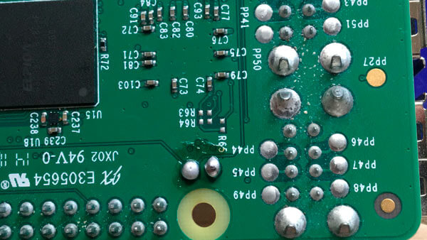 Resulta que quiero poner un botón de reset y para ello he soldado dos "pines" a las conexiones de Run (pic1). Por otro lado he soldado dos cables macho-hembra a las patillas del botón (pic2). Cuando enchufo la Raspberry al cable de alimentación me arranca sin problemas. Luego conecto los cables a los pines (pic3) y la Raspberry se apaga por completo. Si, con los cables conectados, aprieto el botón y lo dejo presionado la Raspberry arranca de nuevo sin problemas pero en cuanto suelto el botón se vuelve a apagar. Si desconecto, por ejemplo, el cable rojo (pic4) la Raspberry arranca, pero en cuanto conecto el cable rojo se vuelve a apagar.