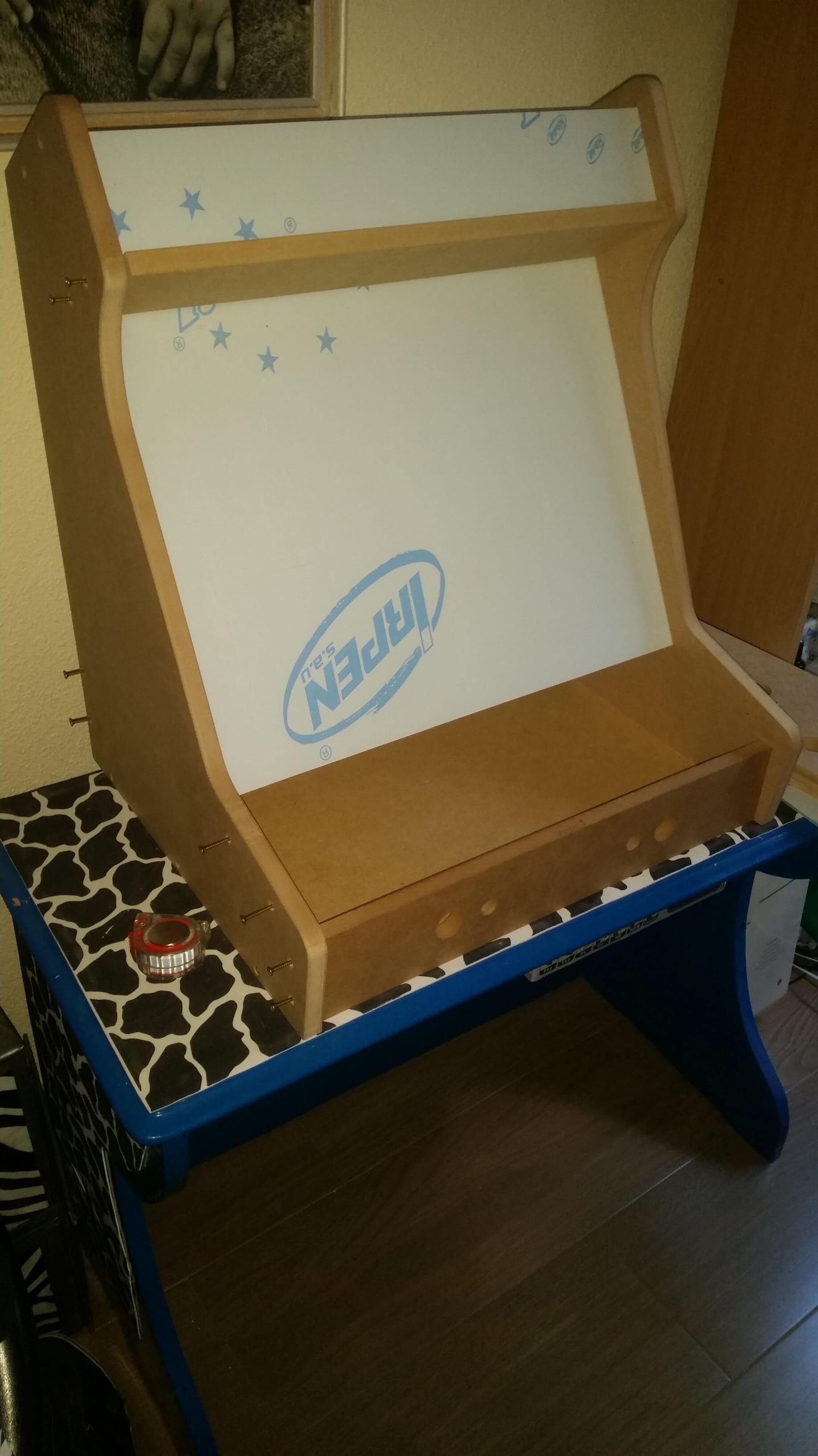 tampoco eso es el gran laburo, buscas cualquier template con el tamaño ya de una bartop, buscas un grafico (que hay miles ya hechos) , lo mandas a una imprenta y ya esta ...
