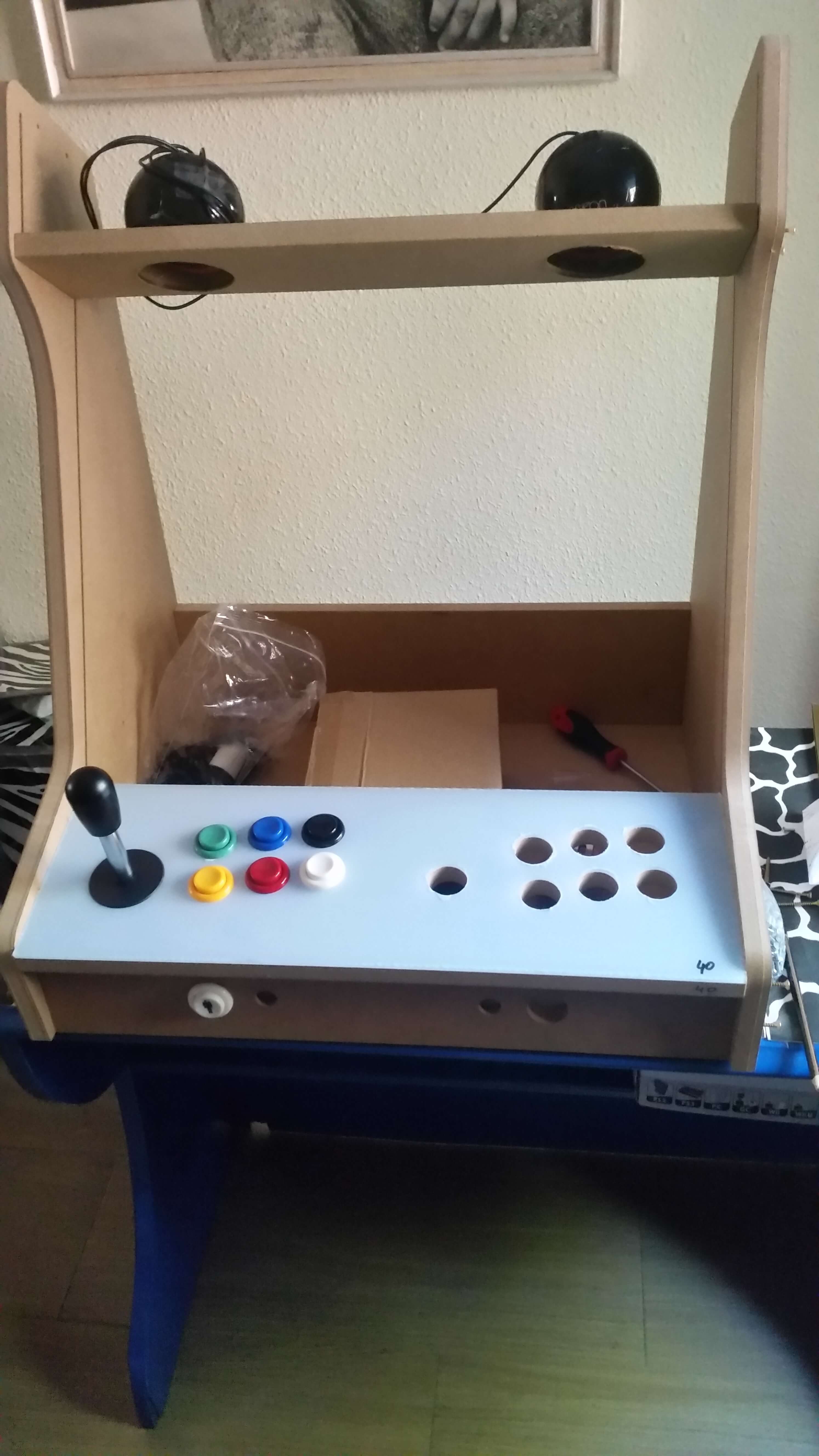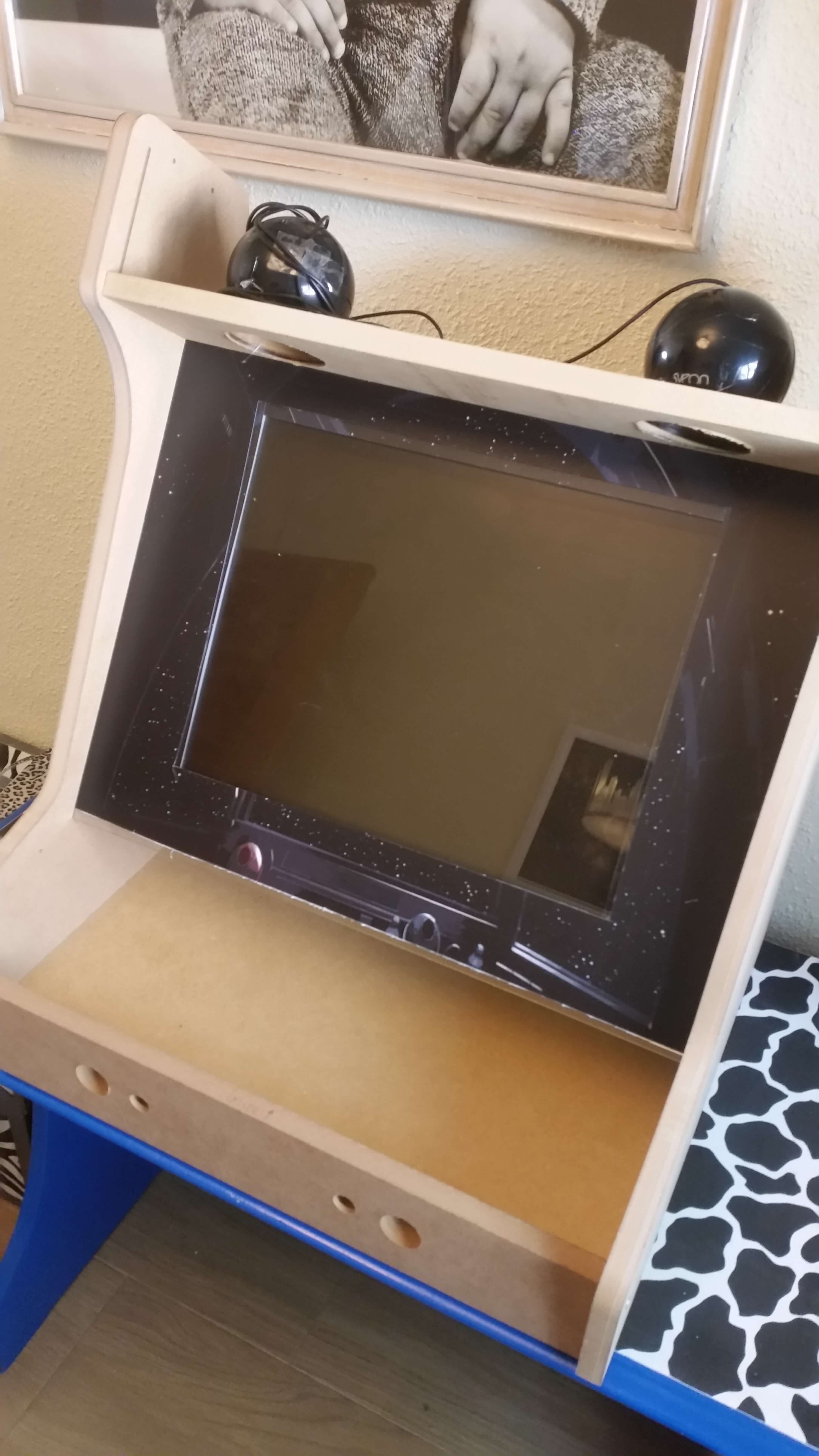 Se me colo una imagen repetida pero bueno..el momitor por wallapop por 20e ,los altavoces los tenia por casa,la raspberry me la regalaron x navidad ..las maderas y vinilos a talentec y los botones en Amazon y lo demás hechandole horas y ganas