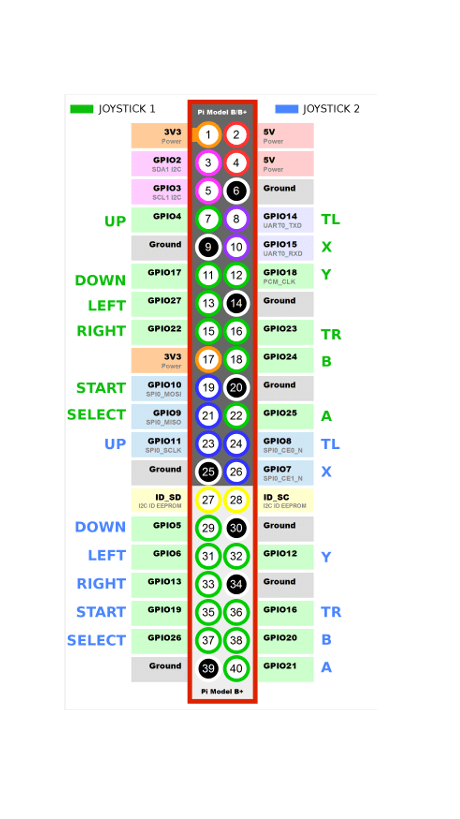 Tras pensar el tema, he decidido comprar unos cables DU PONT macho hembra, alargar los que vienen con los botones y palancas y configurar ambos playes por los puertos gpio de la raspberry.